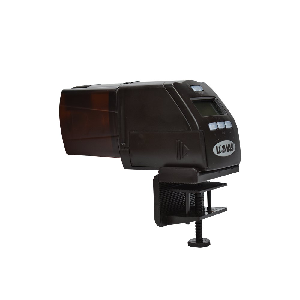 Pantalla LCD de fácil lectura. Apertura de ventanilla ajustable para diferentes tipos de alimento y raciones. Cuenta con un soporte ajustable para colocarlo en el tanque. Se puede programar para alimentar a los peces de 1 a 5 veces al día y que el contenedor de alimento gire de 1 a 3 veces por toma. Cuenta con un botón de alimentación inmediata. Ideal para alimento granulado y en hojuelas. Especificaciones técnicas: Opera con dos baterías AA, incluidas.