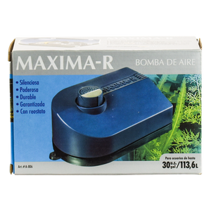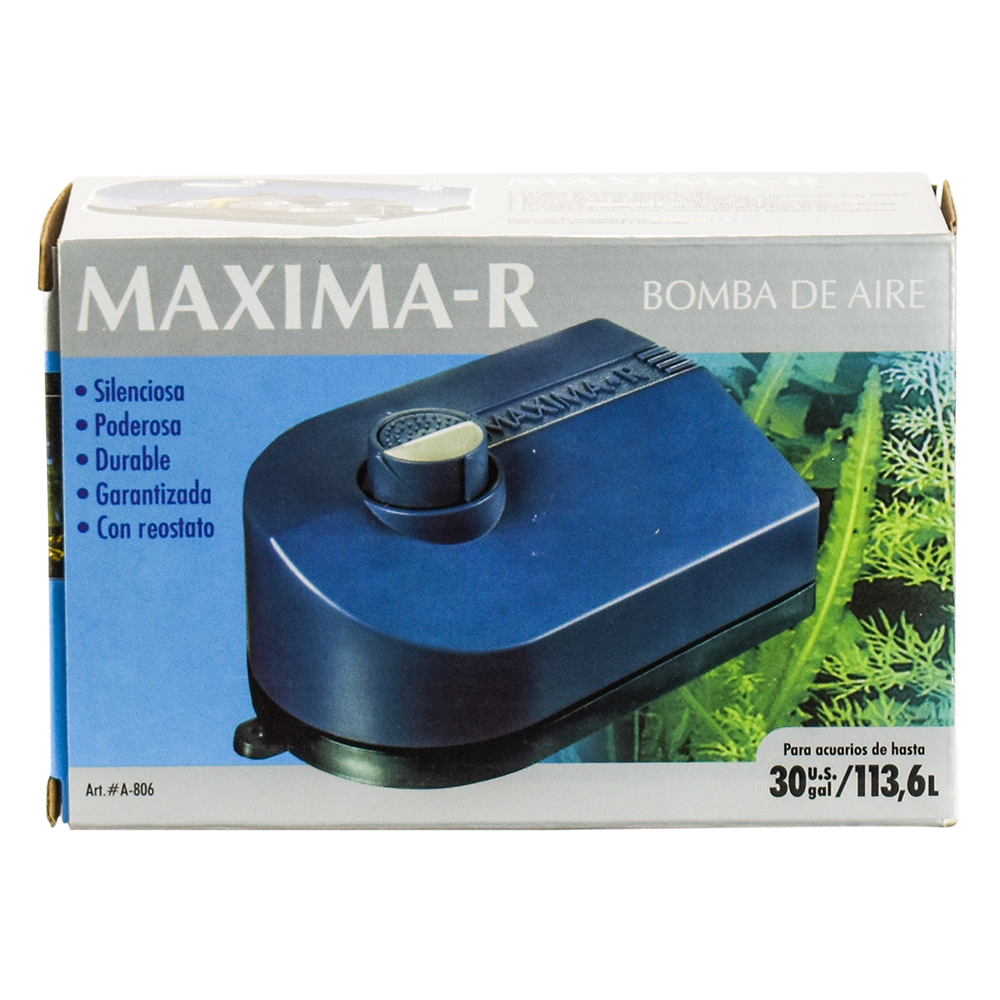 Fuente confiable de aire para artículos operados por aire como piedras aireadoras, los adornos accionados por aire, o los skimmers que funcionan con aire para añadir movimiento u oxígeno a cualquier acuario. Cubierta para amortiguar el ruido. La placa de la base impide la vibración y el movimiento de la bomba. Bobinas que no se calientan de larga vida útil. Bisagra de brazo oscilante integrada al ensamble del diafragma Tensible Flex. Ensamble de la salida de aire integrado al cuerpo de la válvula. Ventajas: Silenciosa, poderosa, durable. Especificaciones: Las salidas se basan en una columna de agua de 12 pulgadas de altura utilizando una roca viva cilíndrica de 1 pulgadas.