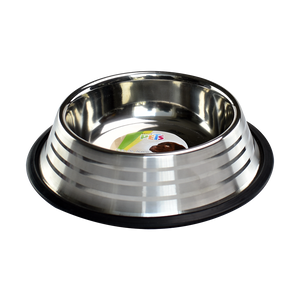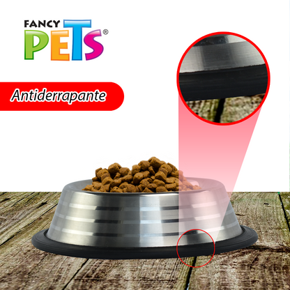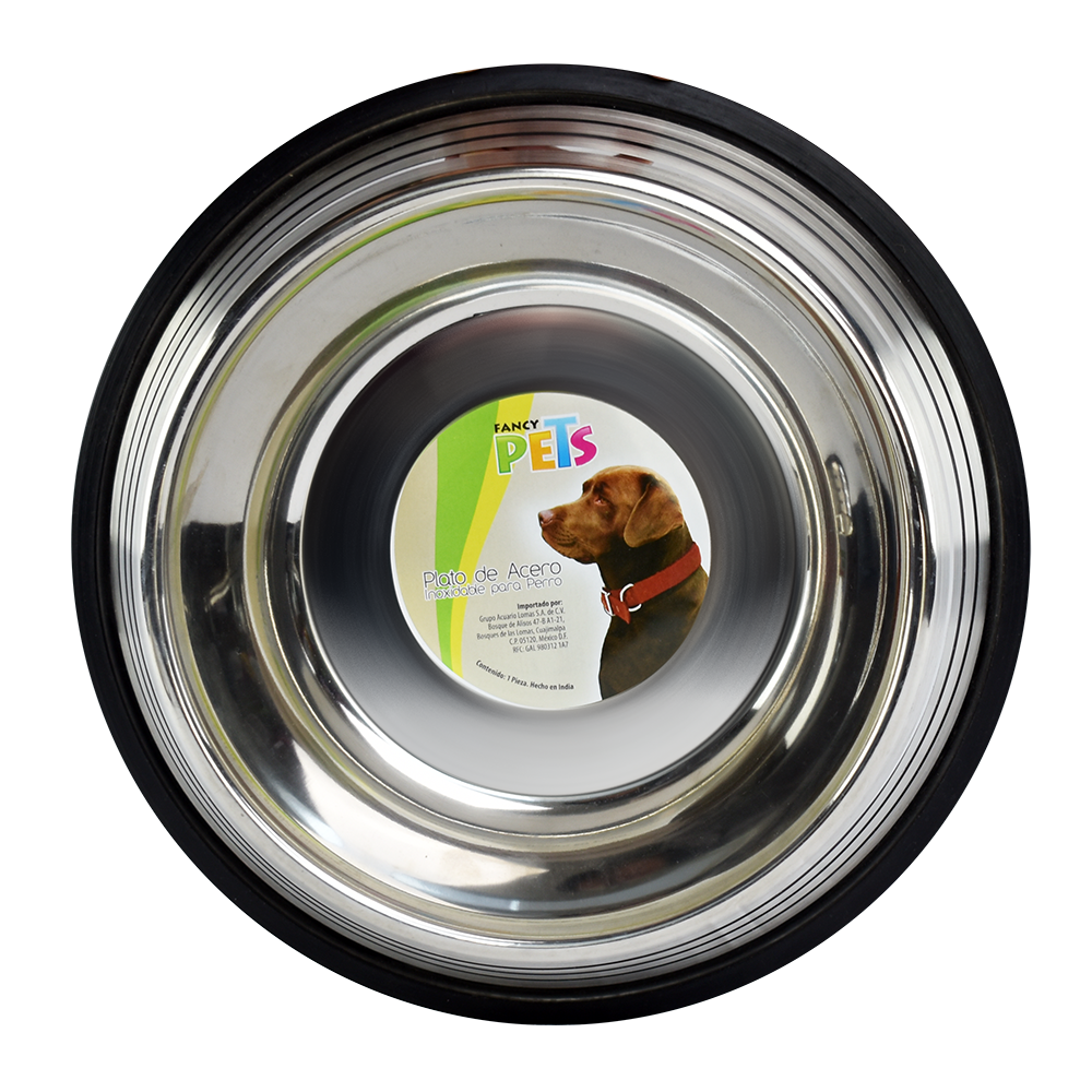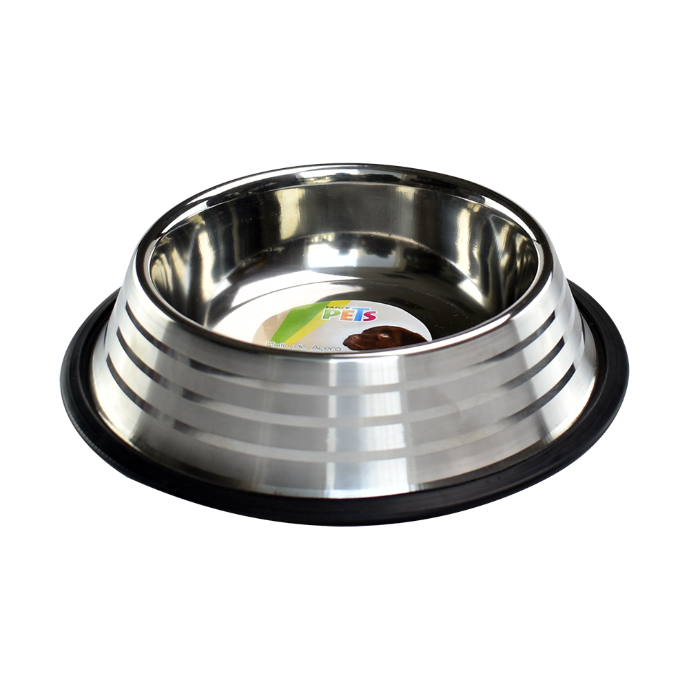 Plato para perro de acero inoxidable. Ideal para alimentar a la mascota, el plato es durable, resistente y fácil de limpiar.