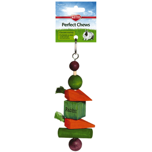 ¡El juguete masticable se cuelga en cualquier lugar de la jaula de tu mascota! tiene numerosos masticables coloridos en un pincho de madera que está rematado con un broche para unirlo fácilmente a la jaula o al hábitat de su mascota.