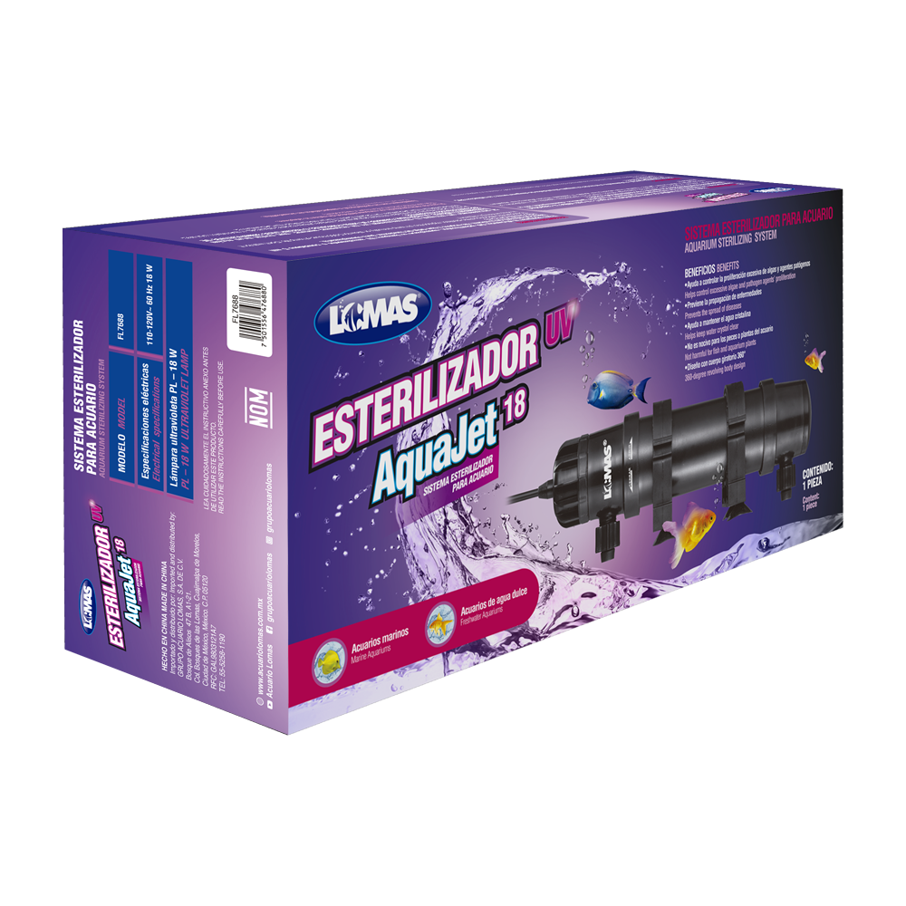 El esterilizador UV es un eficaz aliado para prevenir enfermedades y reducir probabilidades de contagio, así como para evitar la propagación descontrolada de algas unicelulares, bacterias y virus, ayudando a preservar la salud general del hábitat. Beneficios: Ayuda a controlar la proliferación excesiva de algas y agentes patógenos. Previene la propagación de enfermedades. Ayuda a mantener el agua cristalina. No es nocivo para los peces o plantas del acuario. Diseño con cuerpo giratorio 360°