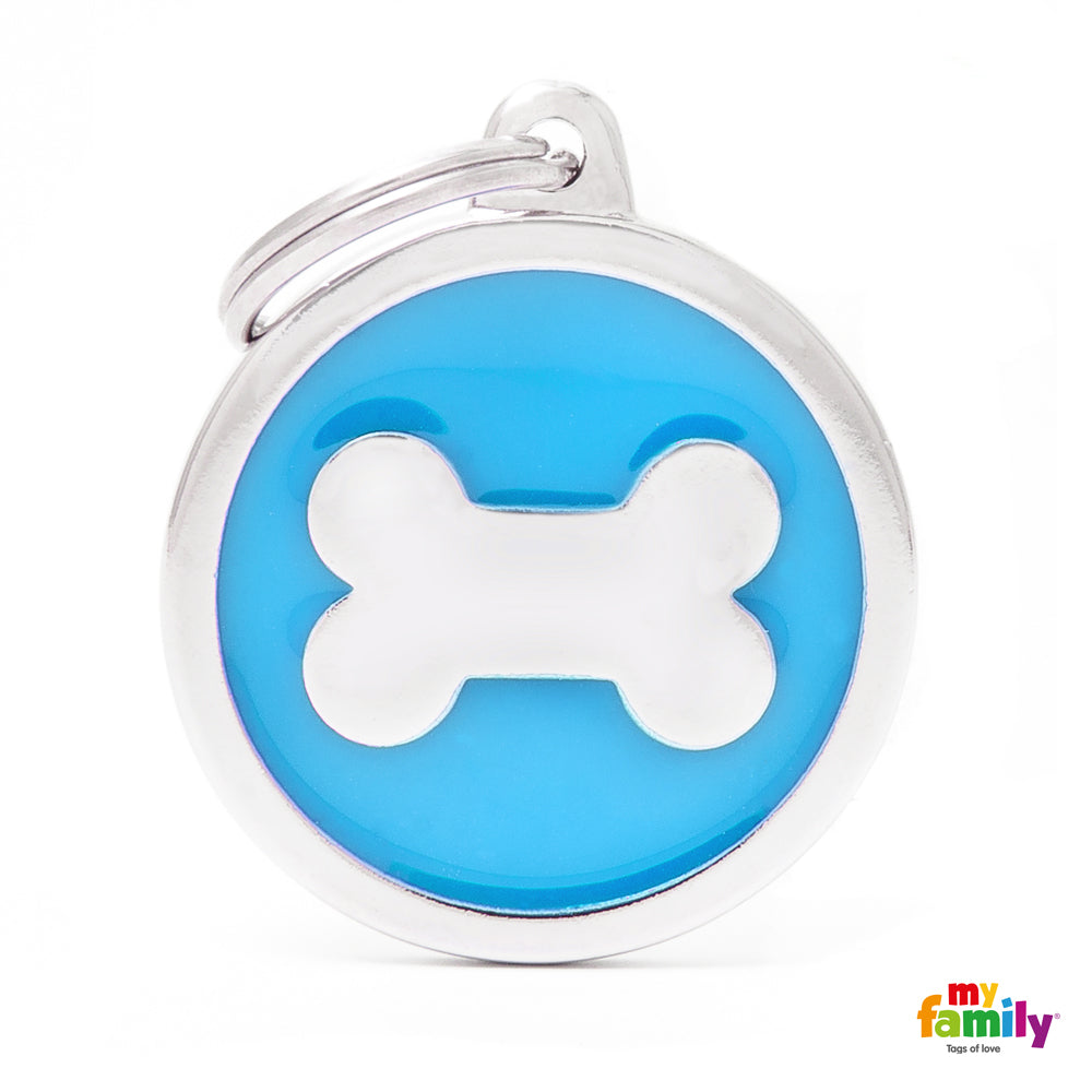 MYFAMILY PLAQUITA ID CLASSIC HUESO EN CIRCULO AZUL CLARO
