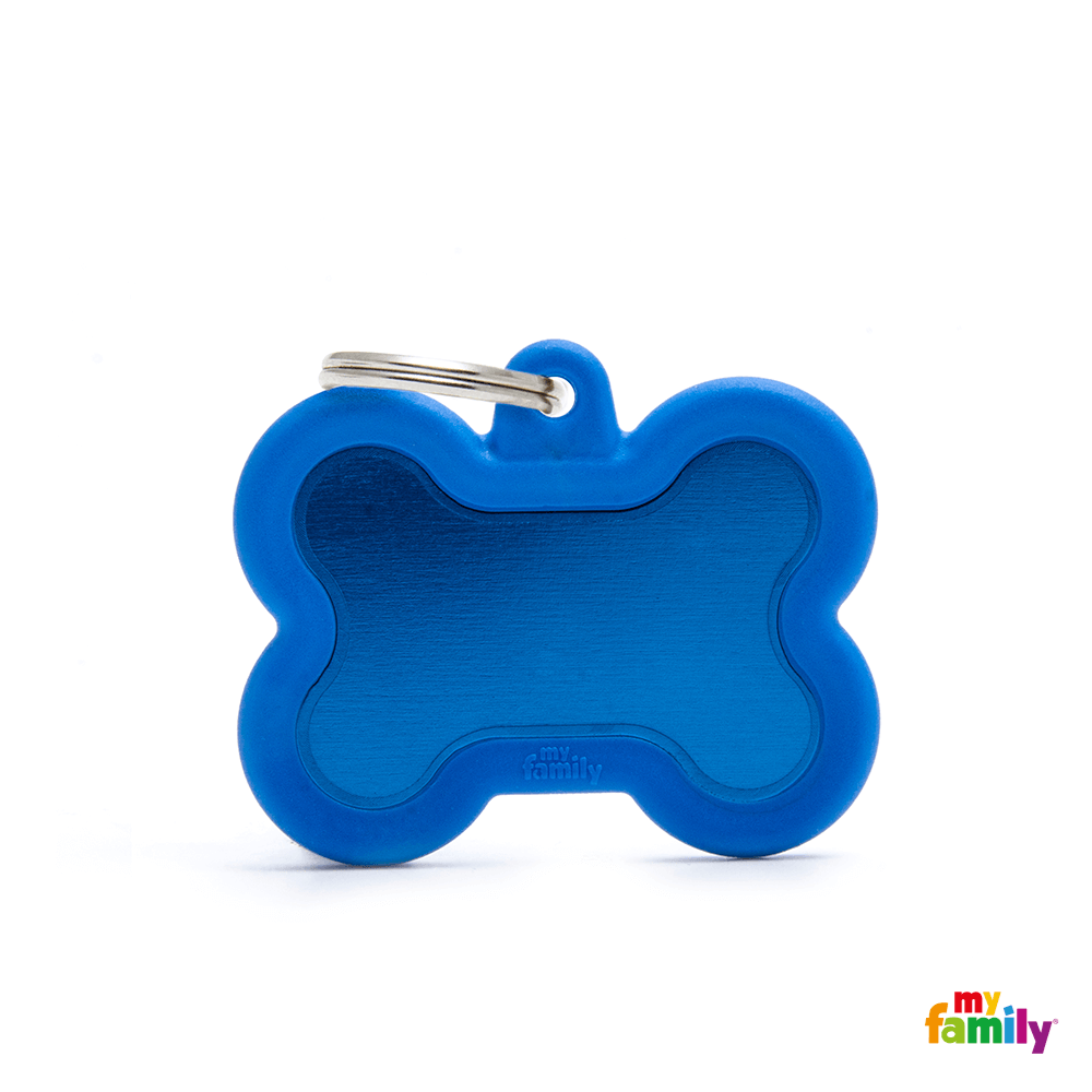 MYFAMILY PLAQUITA ID HUSHTAG HUESO AZUL CON GOMA