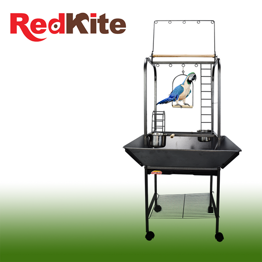 Gimnasio para Loros. La extraordinaria inteligencia de muchas aves requiere de un entretenimiento constante y variado. Al no proporcionarse los suficientes estímulos físicos y mentales a las aves, llegan a presentarse signos de aburrimiento y estrés como la costumbre de arrancarse las plumas, problemas de conducta como la agresión hacia sus propietarios o hacia sus compañeros de jaula. Por lo tanto es de vital importancia proporcionar elementos que contribuyan a distraer y a entretener la inteligencia de las aves, no sólo se reflejará en su conducta, sino también en su salud, ya que además de proporcionar horas y horas de entretenimiento, los materiales con que está fabricado este gimnasio permiten un sano desgaste del pico con total seguridad. Beneficio: Pintura libre de plomo, por lo que no es tóxica para el ave.