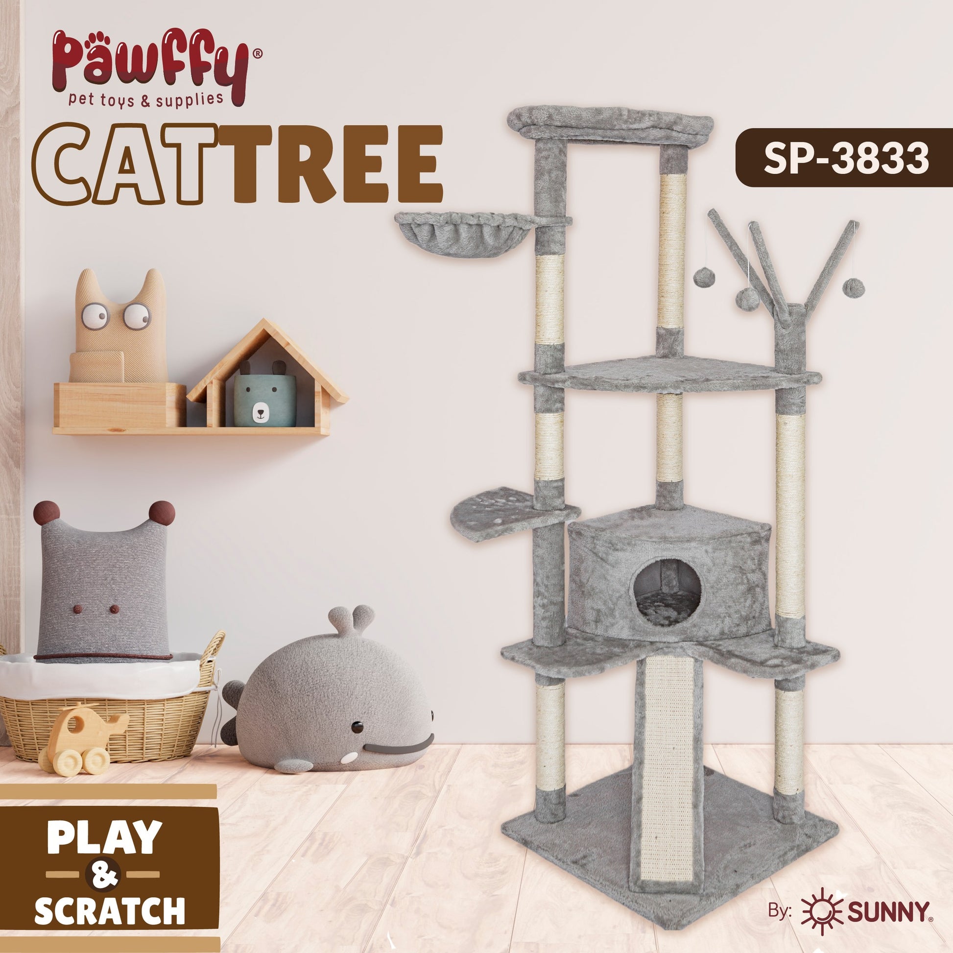 Rascador para gato en esquinero con casitaMedidas: 54.5cm x 54.5cm x 167